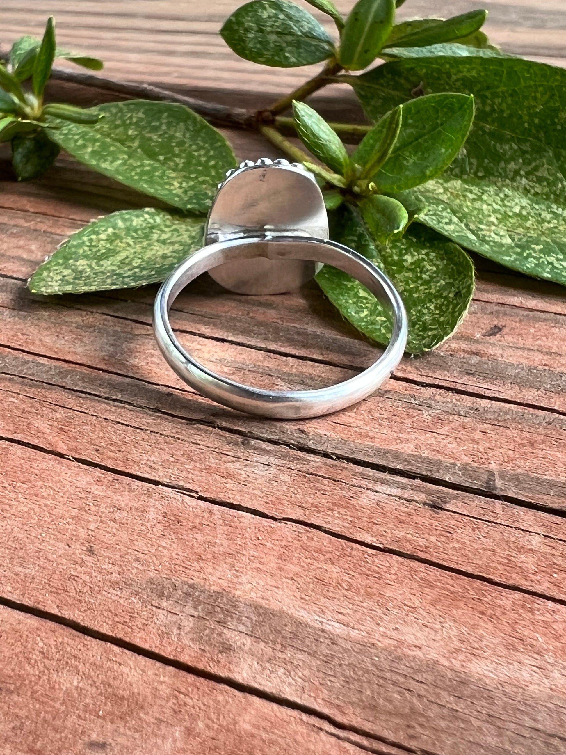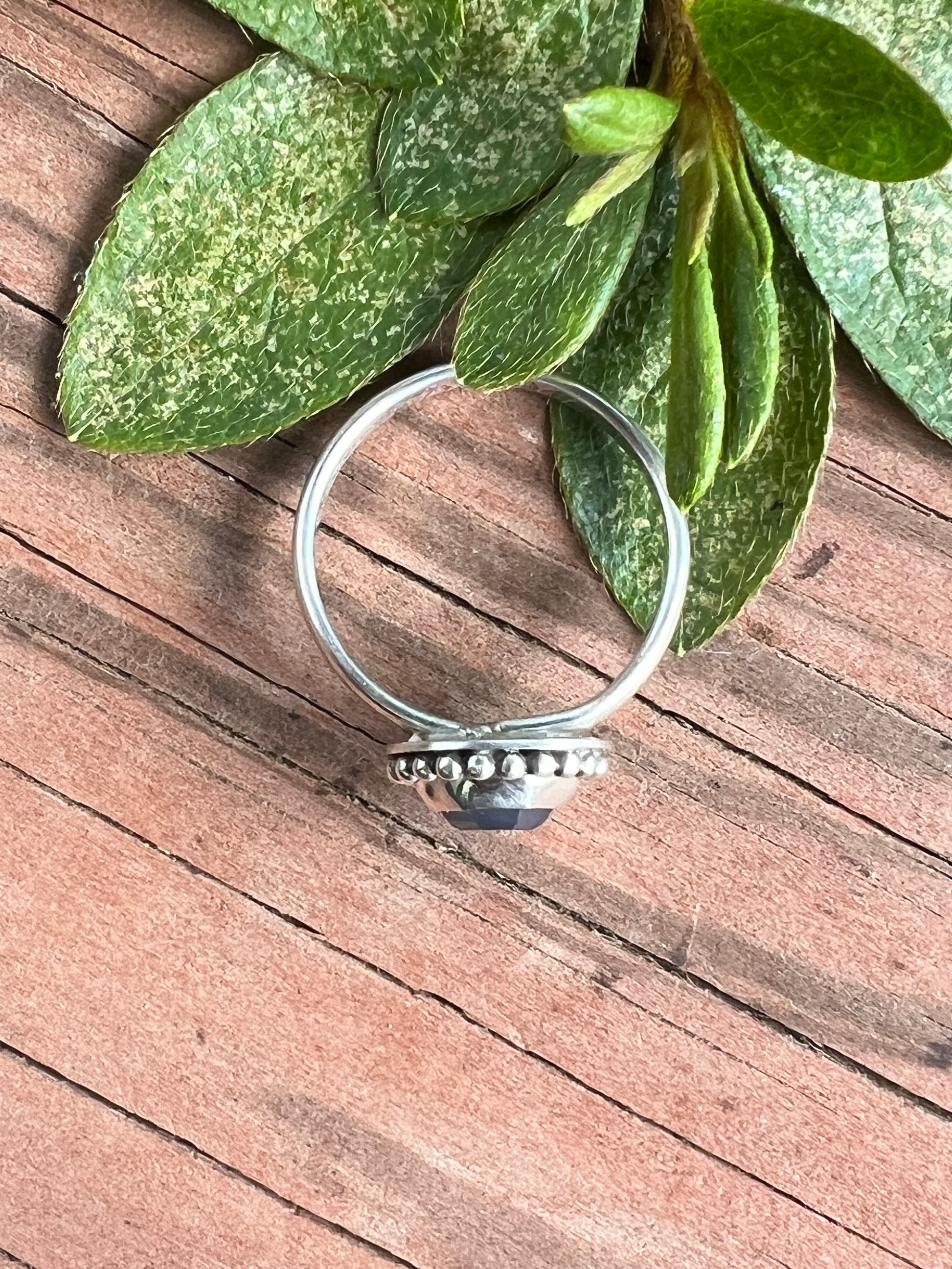Handmade Sterling Silver and Gray Calcedony Coffin Ring, size 8.5.