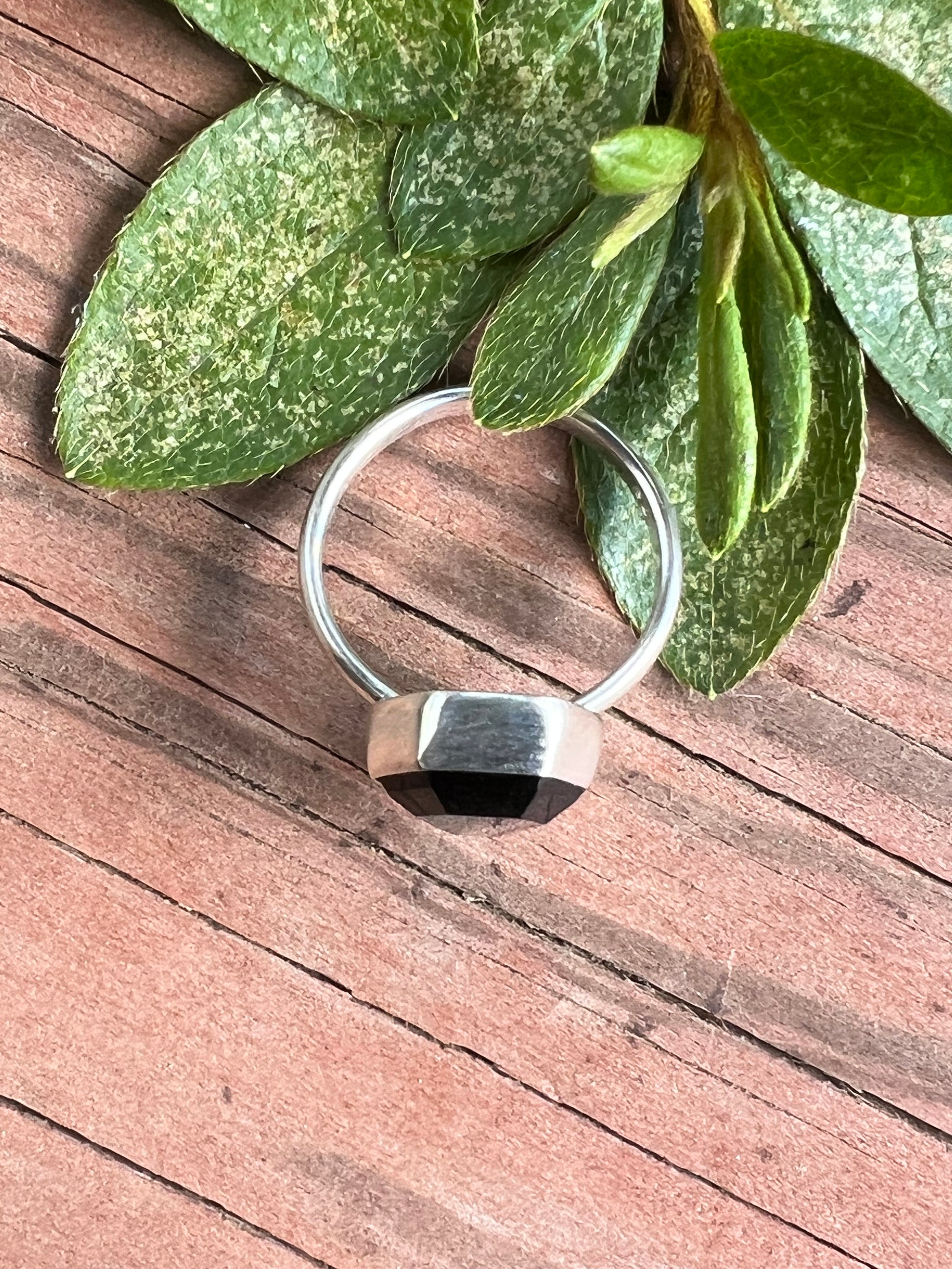 Handmade .925 Sterling Silver and Silver Sheen Obsidian coffin ring, size 6.5.